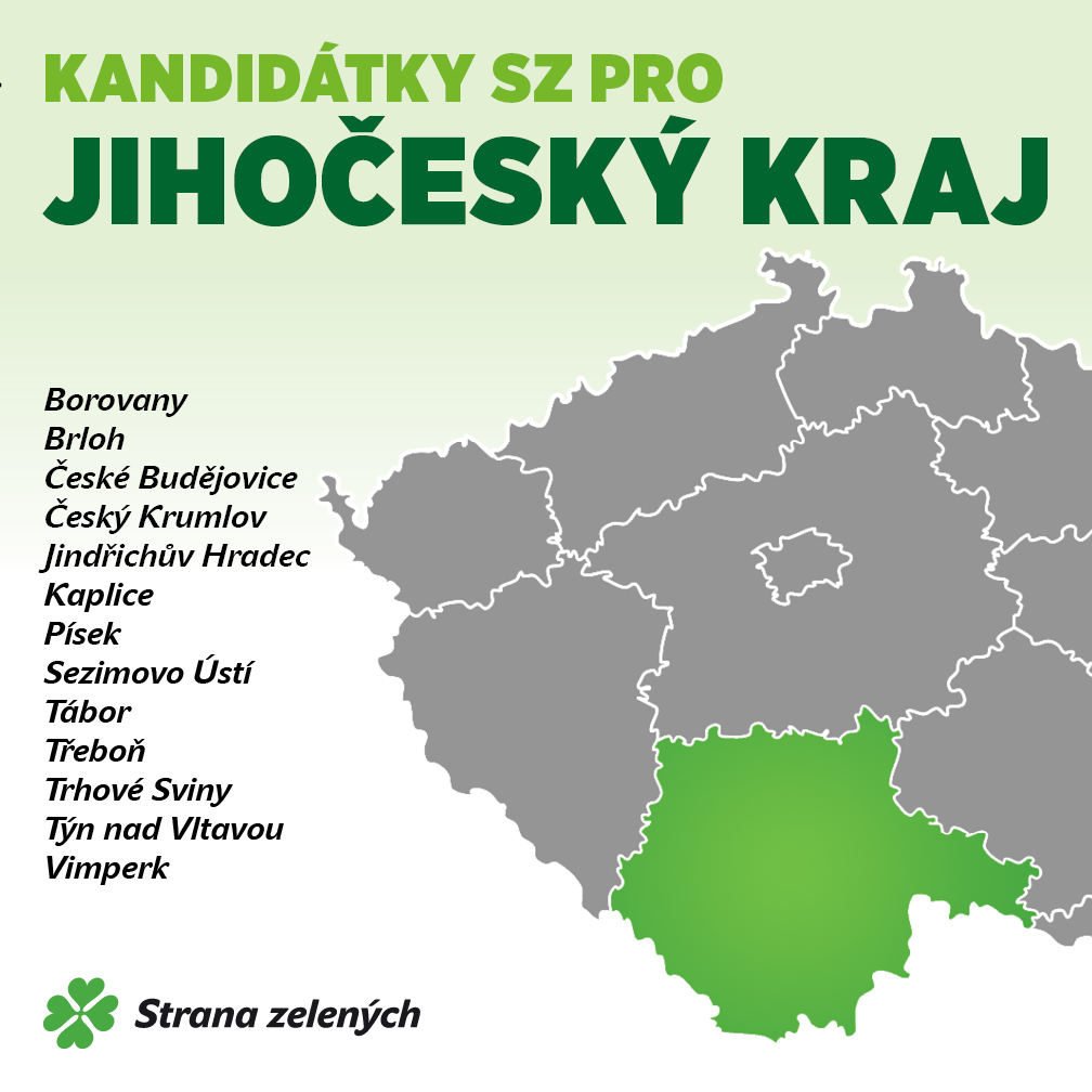 Strana zelených (spolu-)podala v Jihočeském kraji následující kandidátní listiny pro komunální volby 10.- 11. října 2014: